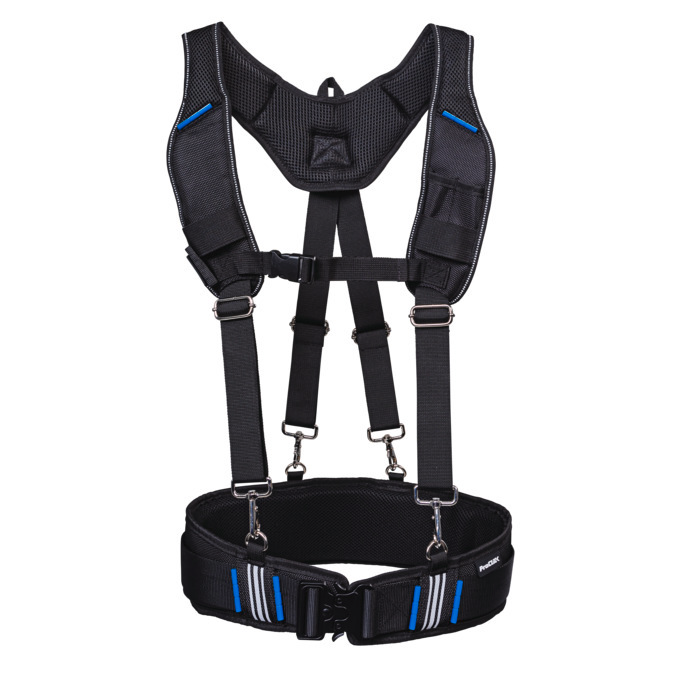 The ProClick shoulder belt is an ideal addition to the ProClick Tool Belt. The carabiner hooks on the adjustable belts enable the belt to be quickly and simply attached to the D-ring of the tool belt. This perfectly distributes the load on the tool belt on the body, aiding ergonomic working with ProClick Tool bags.